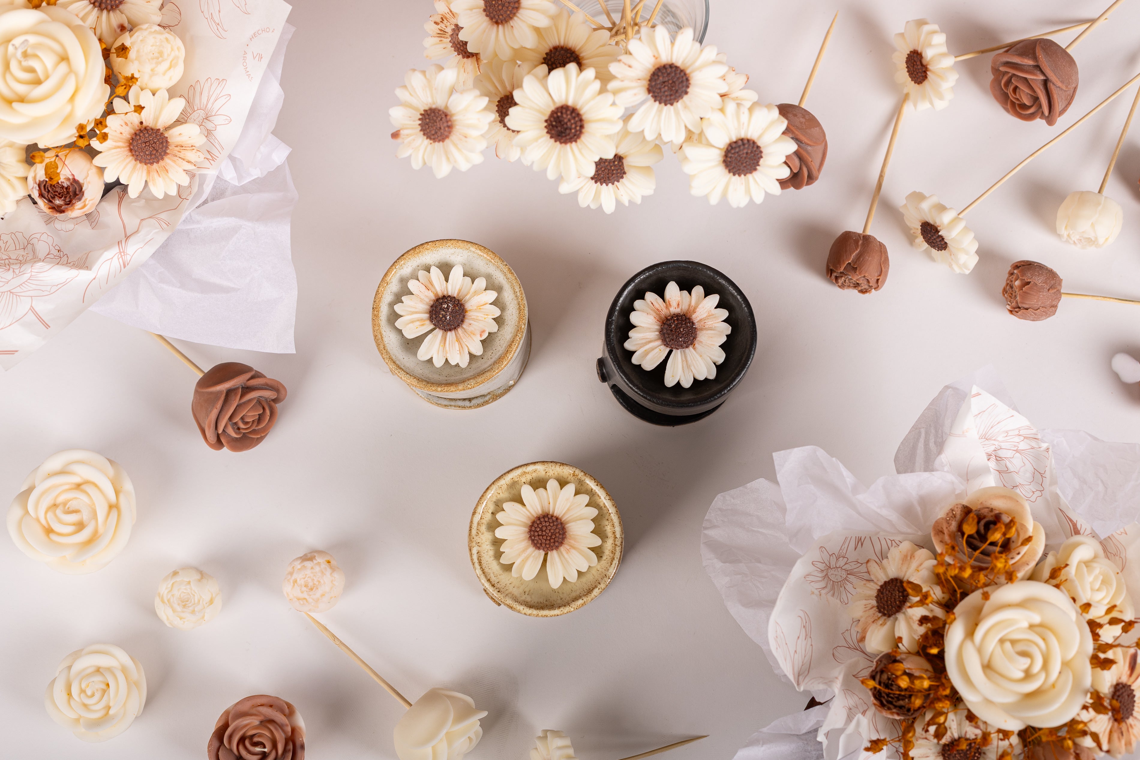 Pack Bouquet Aromático + Maxi Quemador Blanco + Velas + Bombones + Base