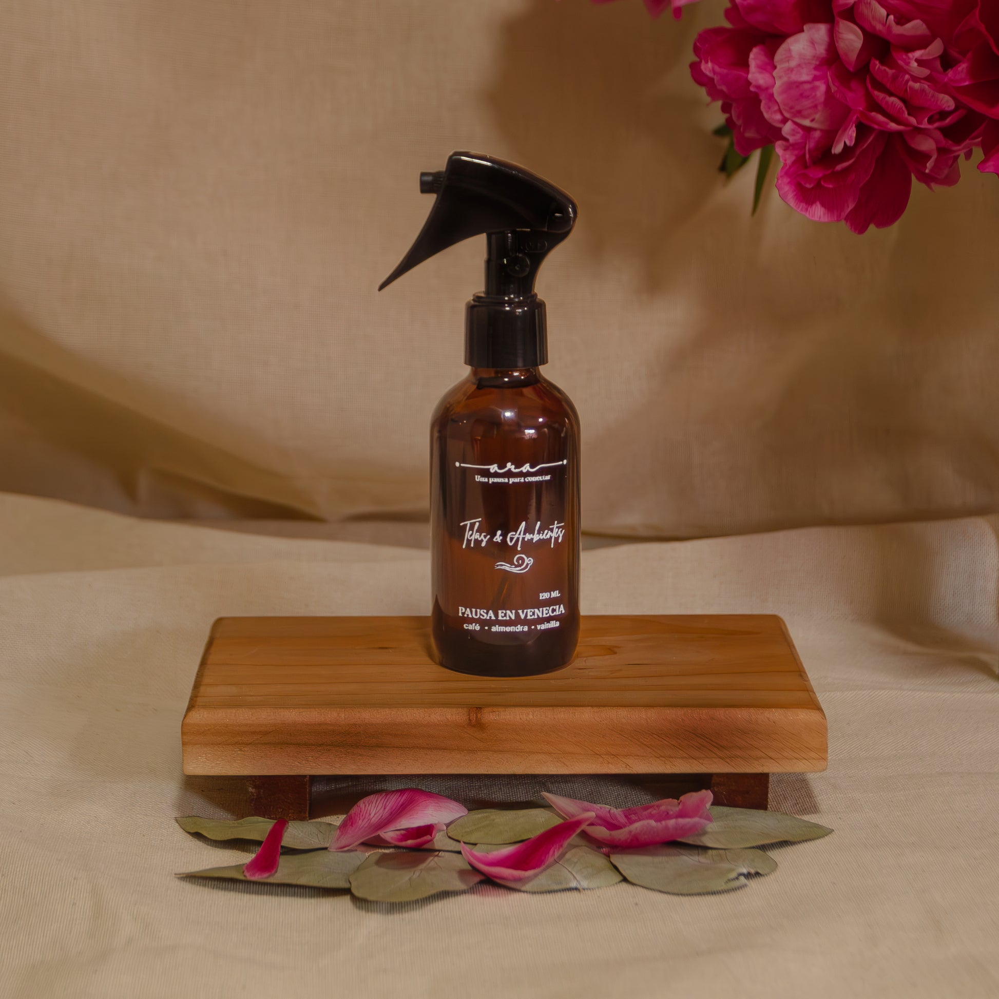 Home Spray para ambientes y telas elaborado en base a esencias aromáticas, disueltas en alcohol de cereal, de origen natural, libre de impurezas y de una versatilidad que permite mezclarse con cualquier aroma, sin distorsionarlo. Ideal para inundar tu atmósfera y bañarla de aromas que te envolverán a ti y a tu alma.