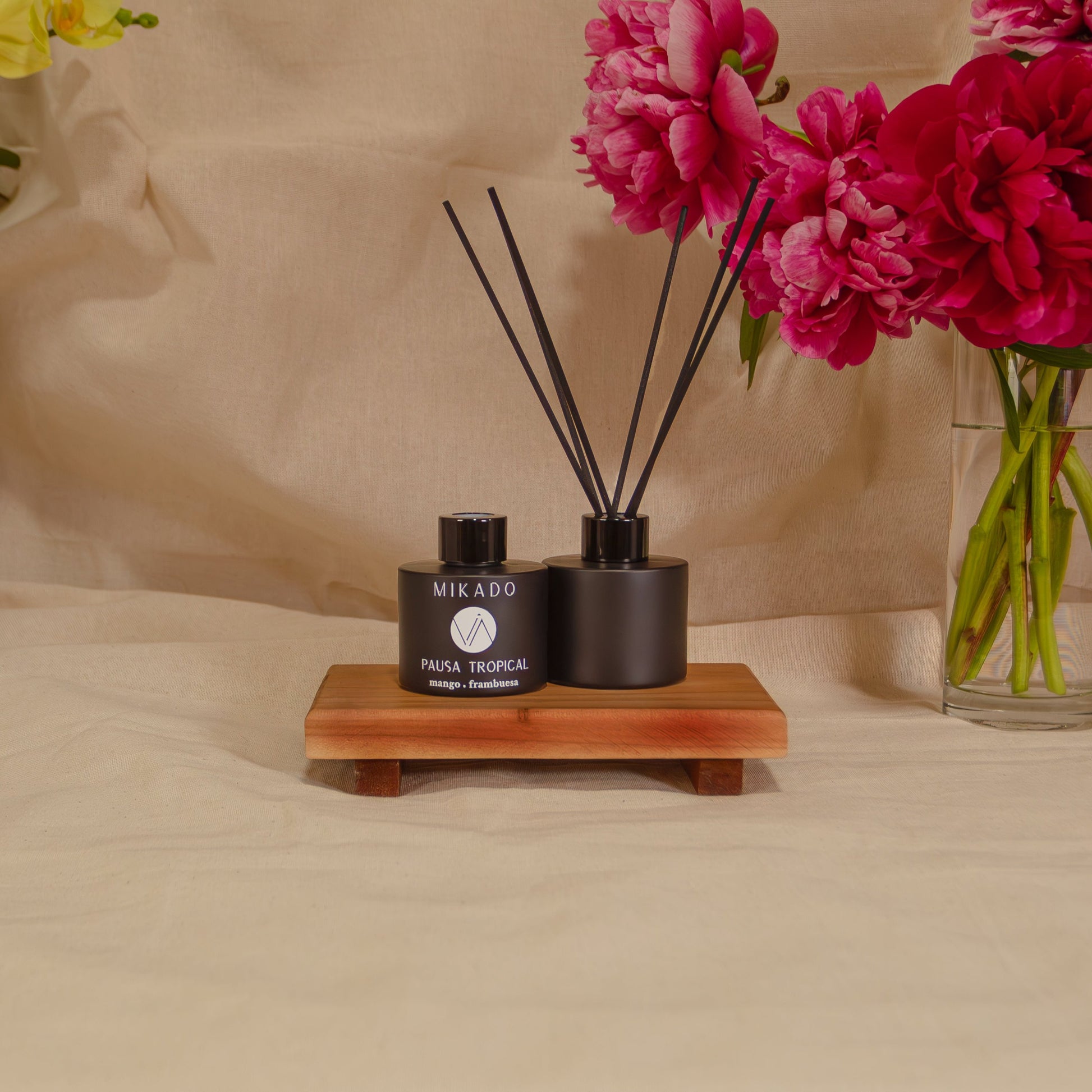 Mezcla concentrada en base a esencias aromáticas y alcohol de cereal, de origen natural que permite el equilibrio perfecto y sofisticación, entre una difusión constante y la profundidad aromática que se necesita para inundar la atmósfera con tu aroma favorito. Además cuenta con un elegante diseño que aromatiza tus ambientes a través de sus finas varillas.