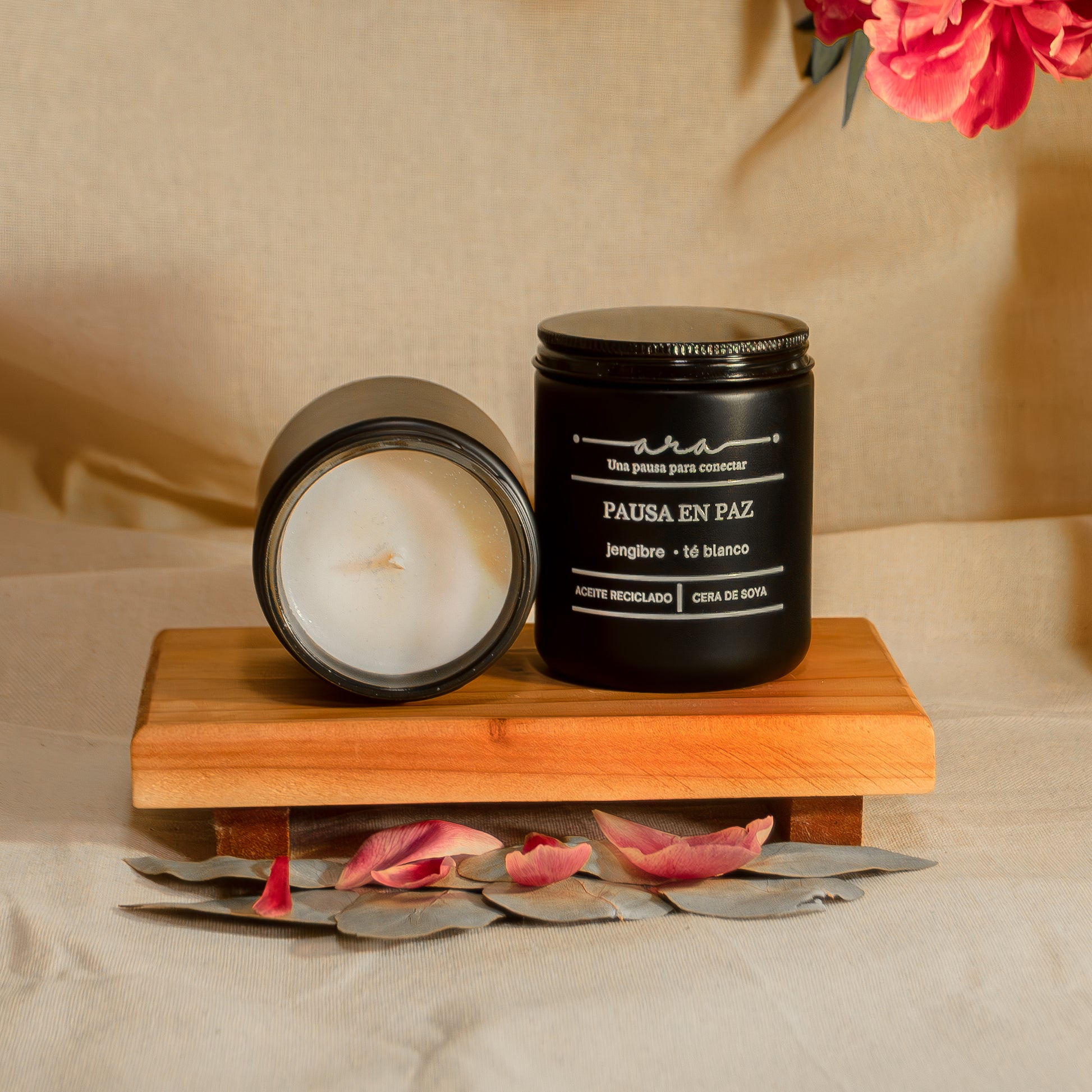 Vela hecha a mano en base a soya y aceite reciclado. Una mezcla perfecta entre la textura suave, cremosa y moldeable de la soya, que permite diseños únicos y creativos, y la reutilización del aceite reciclado, una segunda vida a un elemento que habitualmente se desecha y daña el medio ambiente.